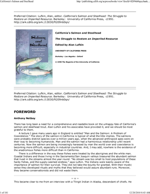 This book documents the story and pinpoints the way Californians have mistreated and exterminated most of the state's salmon and steelhead runs. The engineers who ran the Bureau of Reclamation that built the great Central Valley water projects and others had little interest in saving the fishes. "Bureau policies made fisheries expendable," says Lufkin. "While national emergency restrictions could partly...